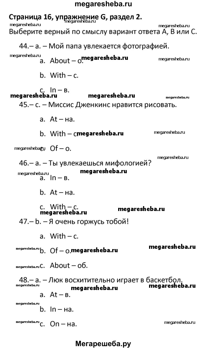Подробный решебник (ГДЗ) по Английскому языку за 10 (десятый) класс Контрольные задания Spotlight - готовый ответ страница - 16. Авторы учебника: Афанасьева, Дули, Михеева, Эванс. Издательство: Просвещение 2017.