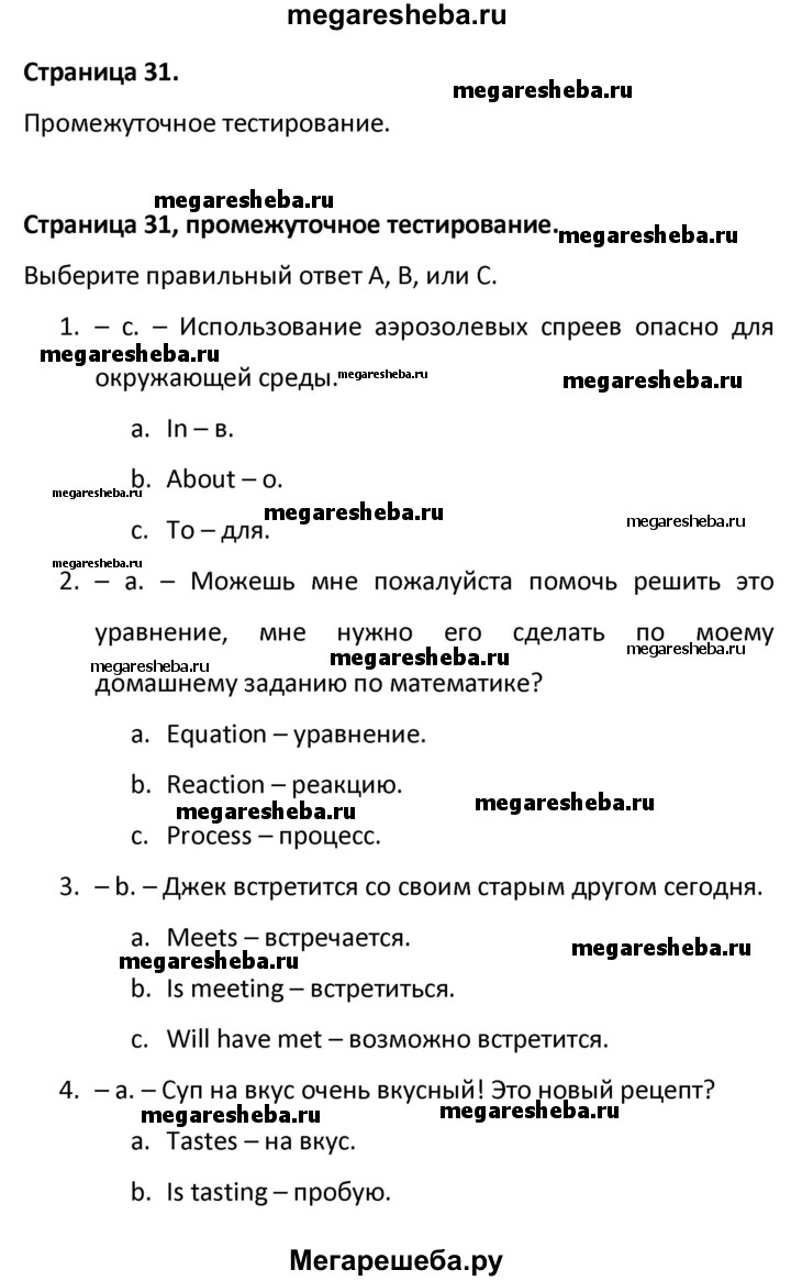 Подробный решебник (ГДЗ) по Английскому языку за 10 (десятый) класс Контрольные задания Spotlight - готовый ответ страница - 31. Авторы учебника: Афанасьева, Дули, Михеева, Эванс. Издательство: Просвещение 2017.