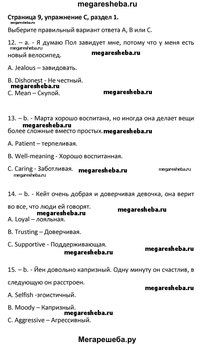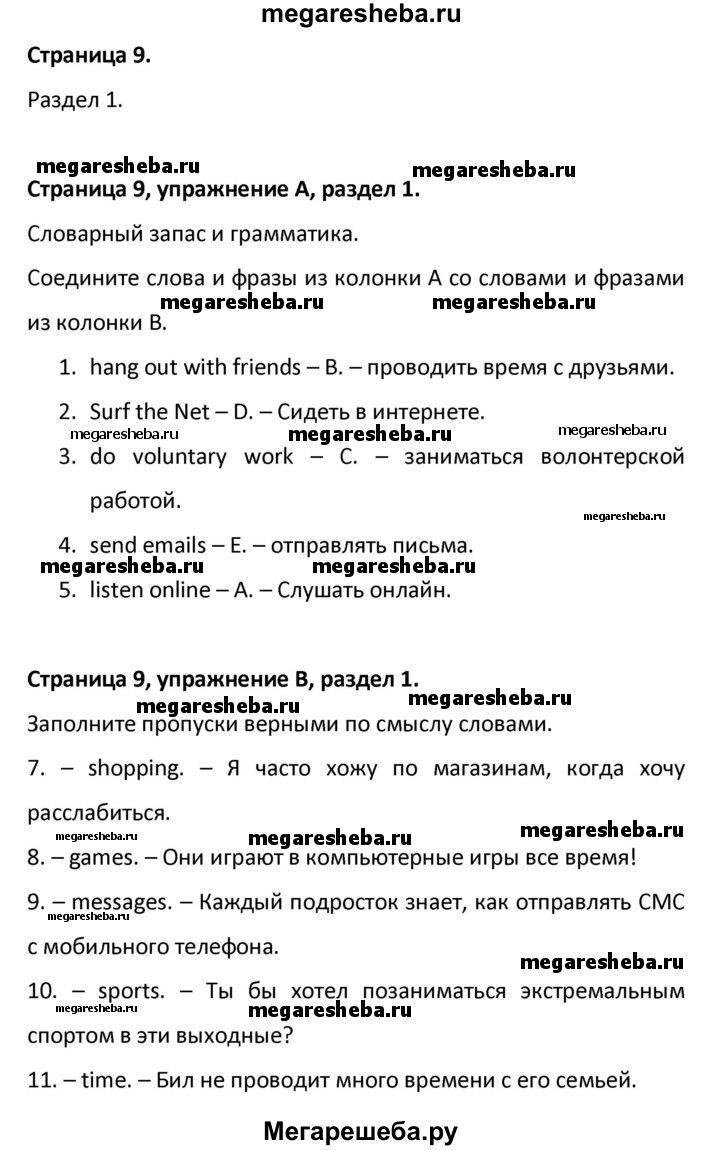 Подробный решебник (ГДЗ) по Английскому языку за 10 (десятый) класс Контрольные задания Spotlight - готовый ответ страница - 9. Авторы учебника: Афанасьева, Дули, Михеева, Эванс. Издательство: Просвещение 2017.