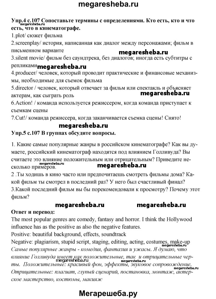 Подробный решебник (ГДЗ) по Английскому языку за 10 (десятый) класс forward - готовый ответ страница - 107. Авторы учебника: Вербицкая, Маккинли, Хастингс, Каминс, Парсонс, Миндрул, Базовый уровень. Издательство: Вентана-граф 2016-2022.