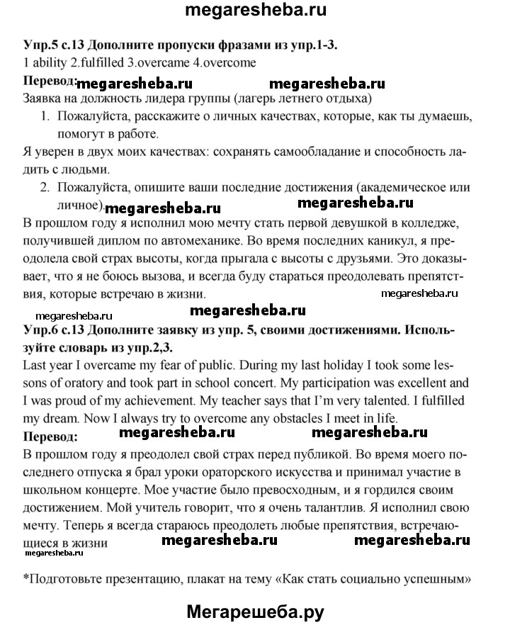 Подробный решебник (ГДЗ) по Английскому языку за 10 (десятый) класс forward - готовый ответ страница - 13. Авторы учебника: Вербицкая, Маккинли, Хастингс, Каминс, Парсонс, Миндрул, Базовый уровень. Издательство: Вентана-граф 2016-2022.