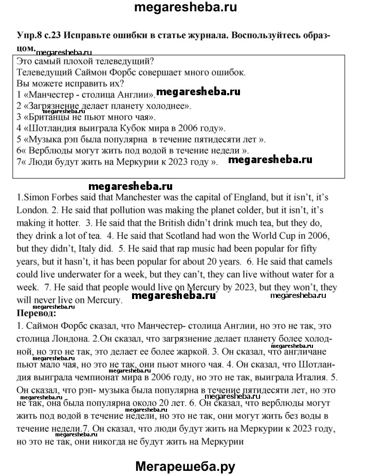 ГДЗ по английскому языку 10 класс Вербицкая forward Базовый уровень страница - 23