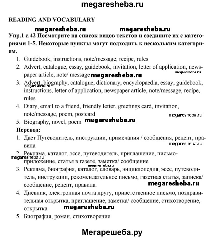 ГДЗ по английскому языку 10 класс Вербицкая forward Базовый уровень страница - 42