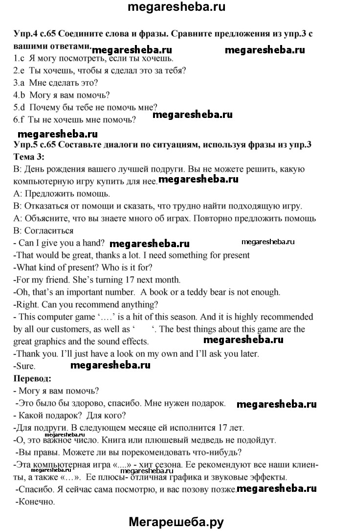 ГДЗ по английскому языку 10 класс Вербицкая forward Базовый уровень страница - 65