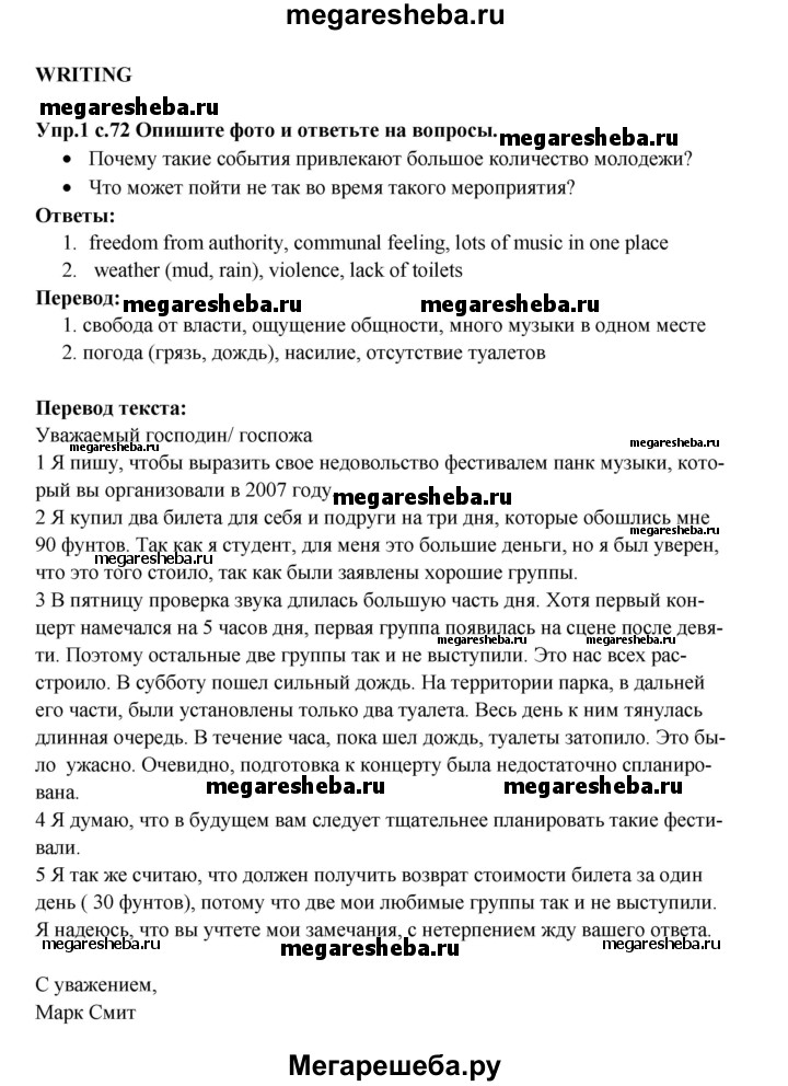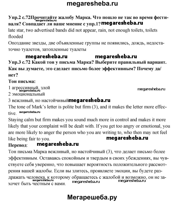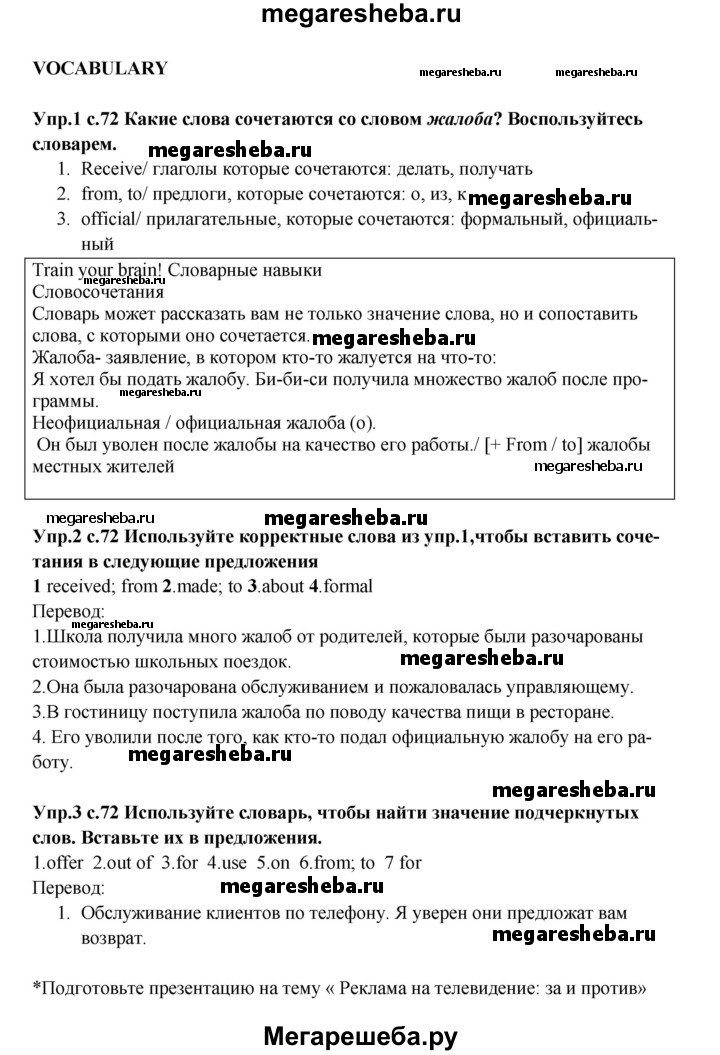 ГДЗ по английскому языку 10 класс Вербицкая forward Базовый уровень страница - 72