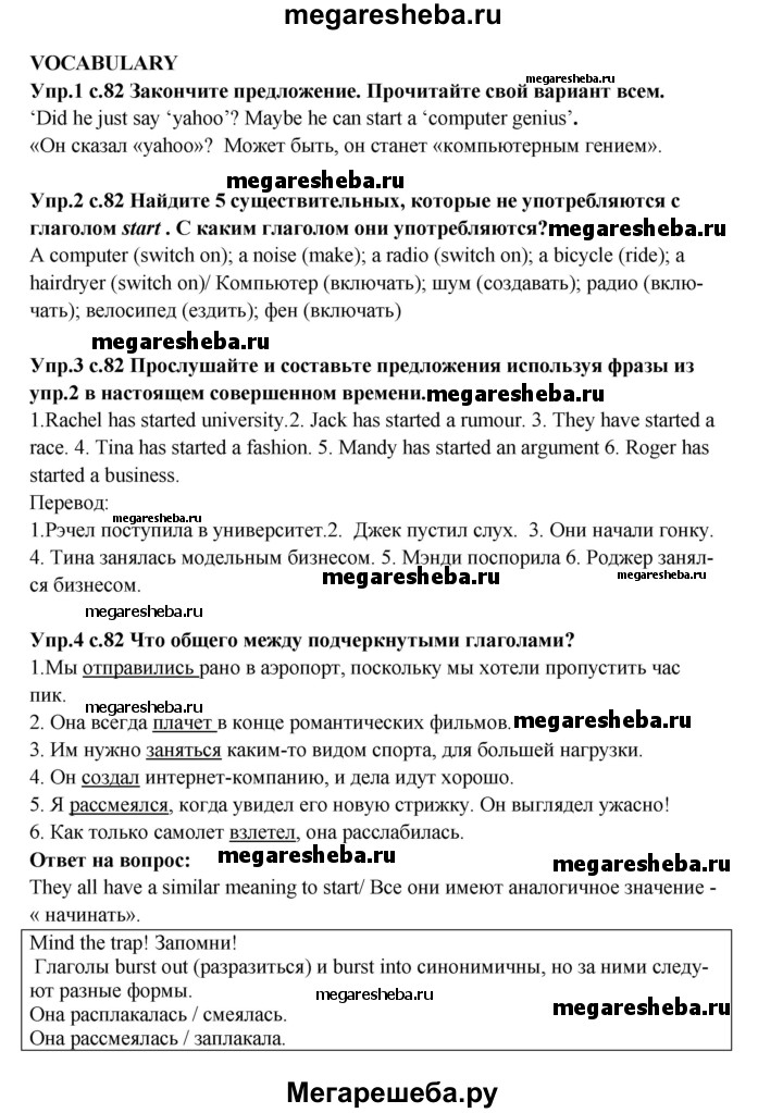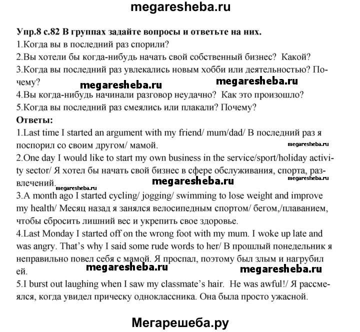 Подробный решебник (ГДЗ) по Английскому языку за 10 (десятый) класс forward - готовый ответ страница - 82. Авторы учебника: Вербицкая, Маккинли, Хастингс, Каминс, Парсонс, Миндрул, Базовый уровень. Издательство: Вентана-граф 2016-2022.