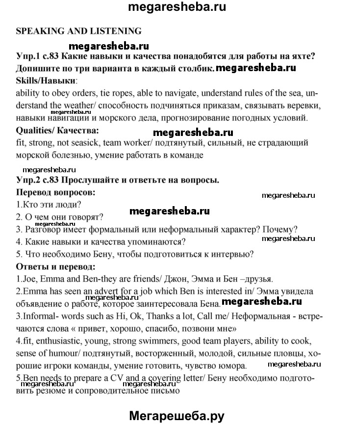 Подробный решебник (ГДЗ) по Английскому языку за 10 (десятый) класс forward - готовый ответ страница - 83. Авторы учебника: Вербицкая, Маккинли, Хастингс, Каминс, Парсонс, Миндрул, Базовый уровень. Издательство: Вентана-граф 2016-2022.