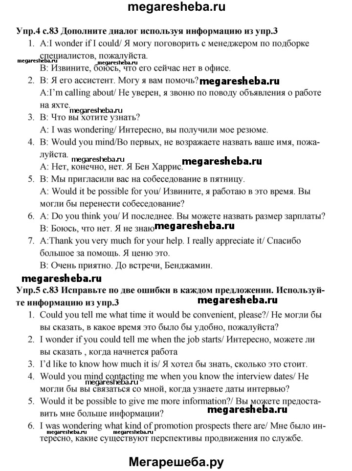 ГДЗ по английскому языку 10 класс Вербицкая forward Базовый уровень страница - 83