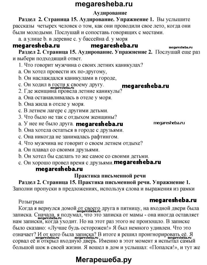Подробный решебник (ГДЗ) по Английскому языку за 10 (десятый) класс рабочая тетрадь - готовый ответ страница - 15. Авторы учебника: Комарова, Ларионова, Араванис, Базовый уровень. Издательство: Русское слово 2016.