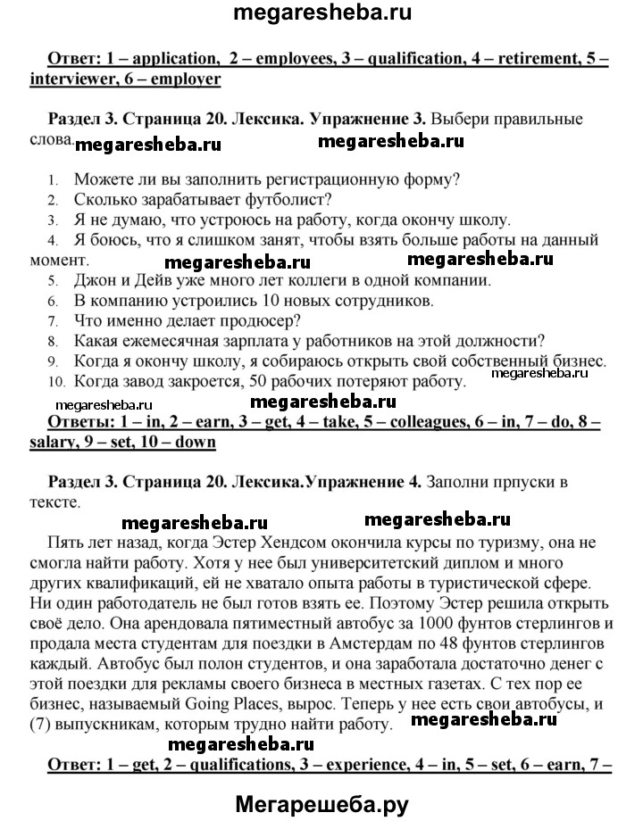 Подробный решебник (ГДЗ) по Английскому языку за 10 (десятый) класс рабочая тетрадь - готовый ответ страница - 20. Авторы учебника: Комарова, Ларионова, Араванис, Базовый уровень. Издательство: Русское слово 2016.