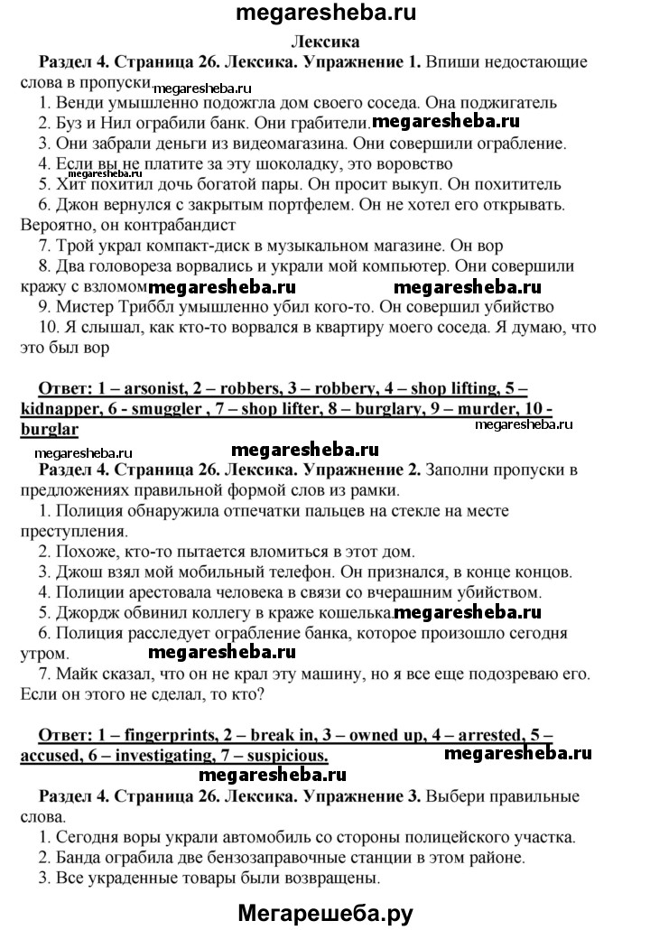 Подробный решебник (ГДЗ) по Английскому языку за 10 (десятый) класс рабочая тетрадь - готовый ответ страница - 26. Авторы учебника: Комарова, Ларионова, Араванис, Базовый уровень. Издательство: Русское слово 2016.