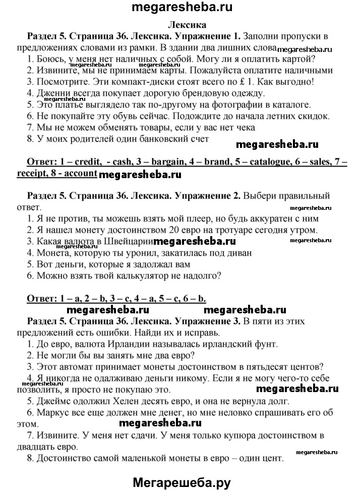Подробный решебник (ГДЗ) по Английскому языку за 10 (десятый) класс рабочая тетрадь - готовый ответ страница - 36. Авторы учебника: Комарова, Ларионова, Араванис, Базовый уровень. Издательство: Русское слово 2016.