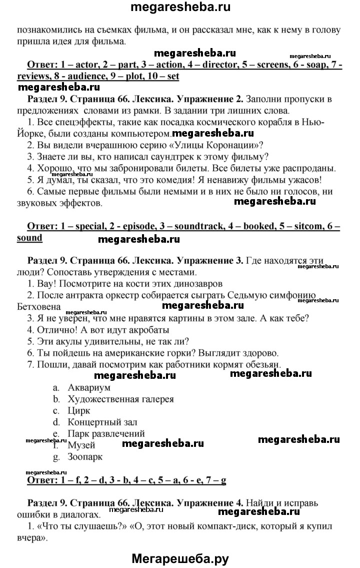 Подробный решебник (ГДЗ) по Английскому языку за 10 (десятый) класс рабочая тетрадь - готовый ответ страница - 66. Авторы учебника: Комарова, Ларионова, Араванис, Базовый уровень. Издательство: Русское слово 2016.
