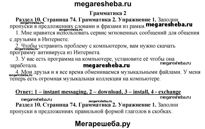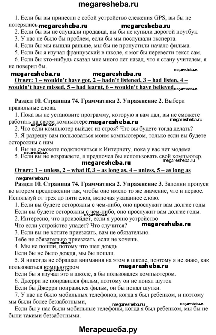 Подробный решебник (ГДЗ) по Английскому языку за 10 (десятый) класс рабочая тетрадь - готовый ответ страница - 74. Авторы учебника: Комарова, Ларионова, Араванис, Базовый уровень. Издательство: Русское слово 2016.