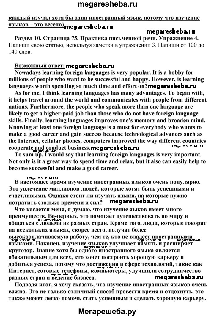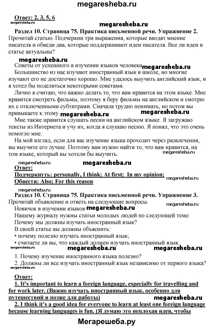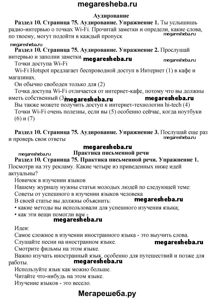 Подробный решебник (ГДЗ) по Английскому языку за 10 (десятый) класс рабочая тетрадь - готовый ответ страница - 75. Авторы учебника: Комарова, Ларионова, Араванис, Базовый уровень. Издательство: Русское слово 2016.