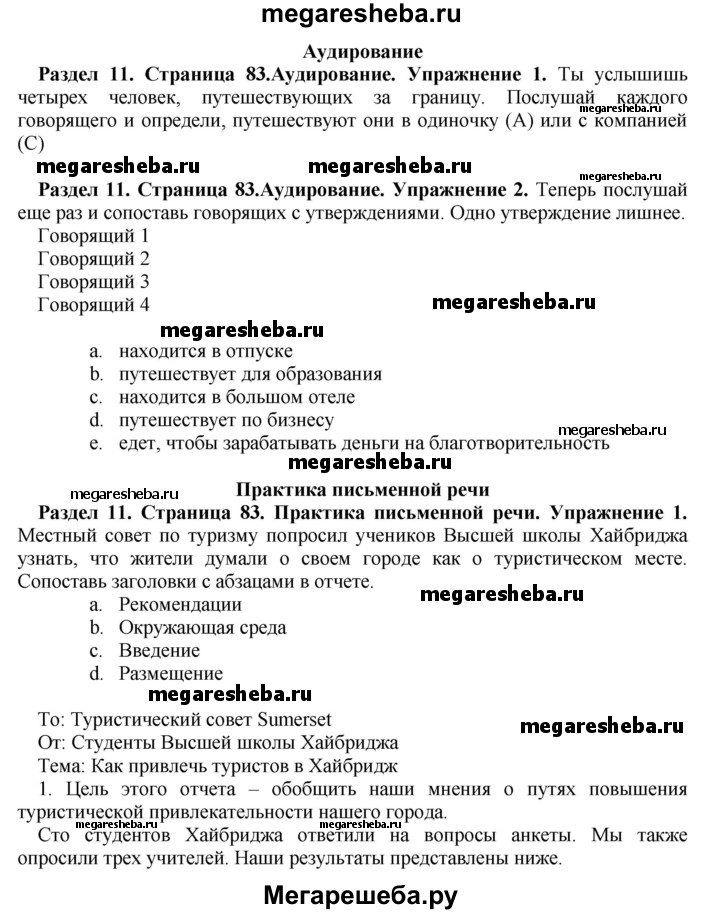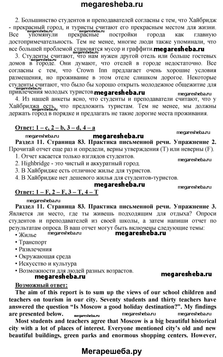 Подробный решебник (ГДЗ) по Английскому языку за 10 (десятый) класс рабочая тетрадь - готовый ответ страница - 83. Авторы учебника: Комарова, Ларионова, Араванис, Базовый уровень. Издательство: Русское слово 2016.
