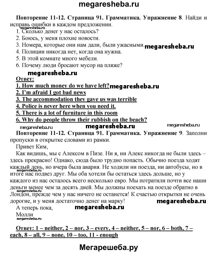 Подробный решебник (ГДЗ) по Английскому языку за 10 (десятый) класс рабочая тетрадь - готовый ответ страница - 91. Авторы учебника: Комарова, Ларионова, Араванис, Базовый уровень. Издательство: Русское слово 2016.