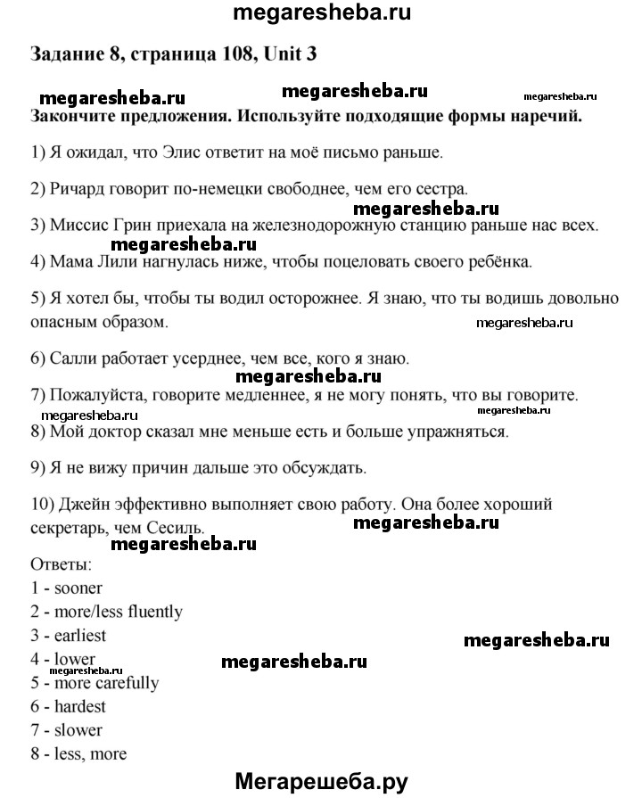Подробный решебник (ГДЗ) по Английскому языку за 11 (одиннадцатый) класс Радужный английский - готовый ответ Unit 3 step 3 - 8. Авторы учебника: Афанасьева, Михеева, Баранова, Базовый уровень. Издательство: Дрофа 2016.