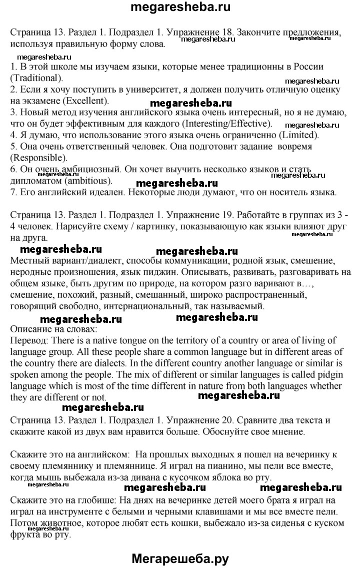 Подробный решебник (ГДЗ) по Английскому языку за 11 (одиннадцатый) класс Enjoy English - готовый ответ страница - 13. Авторы учебника: Биболетова, Бабушис, Снежко. Издательство: Титул 2015-2017.