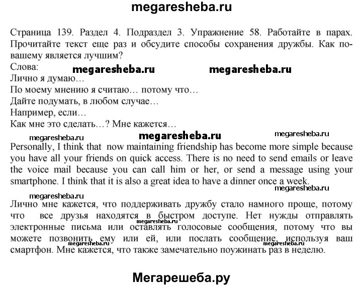 ГДЗ по английскому языку 11 класс Биболетова Enjoy English страница - 139