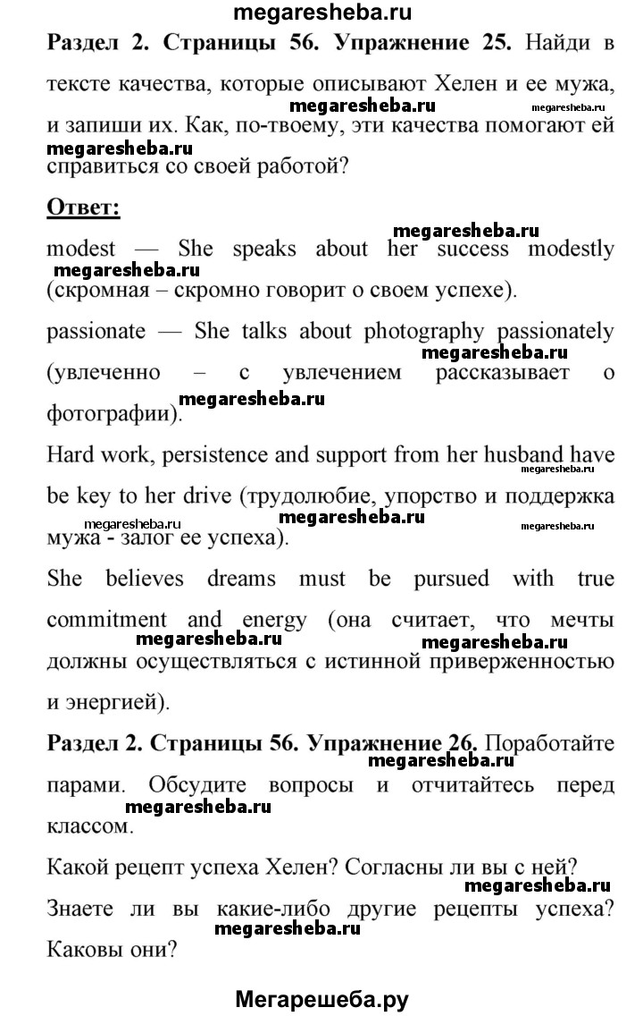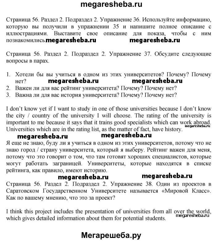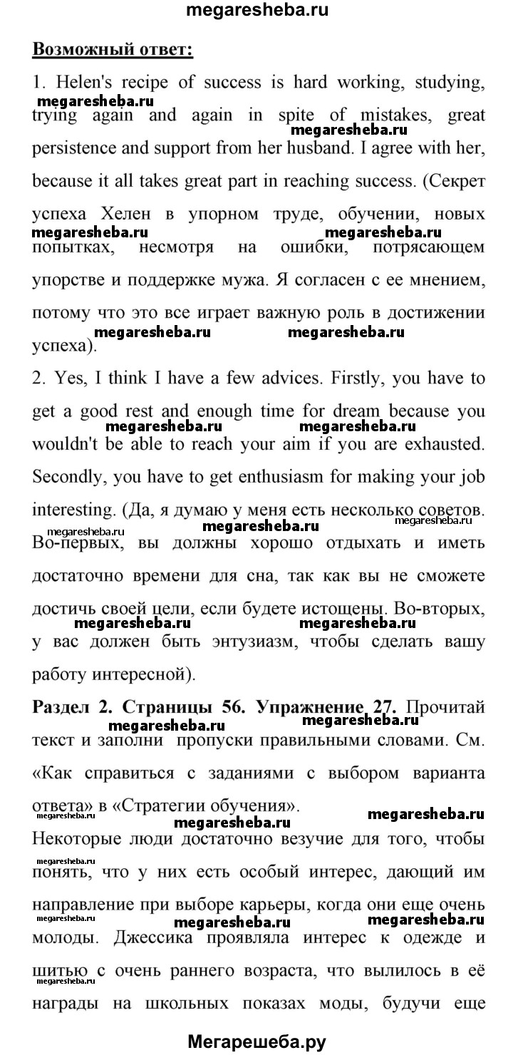 Подробный решебник (ГДЗ) по Английскому языку за 11 (одиннадцатый) класс Enjoy English - готовый ответ страница - 56. Авторы учебника: Биболетова, Бабушис, Снежко. Издательство: Титул 2015-2017.