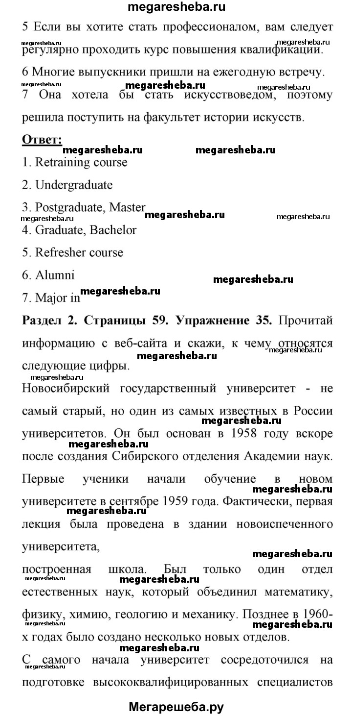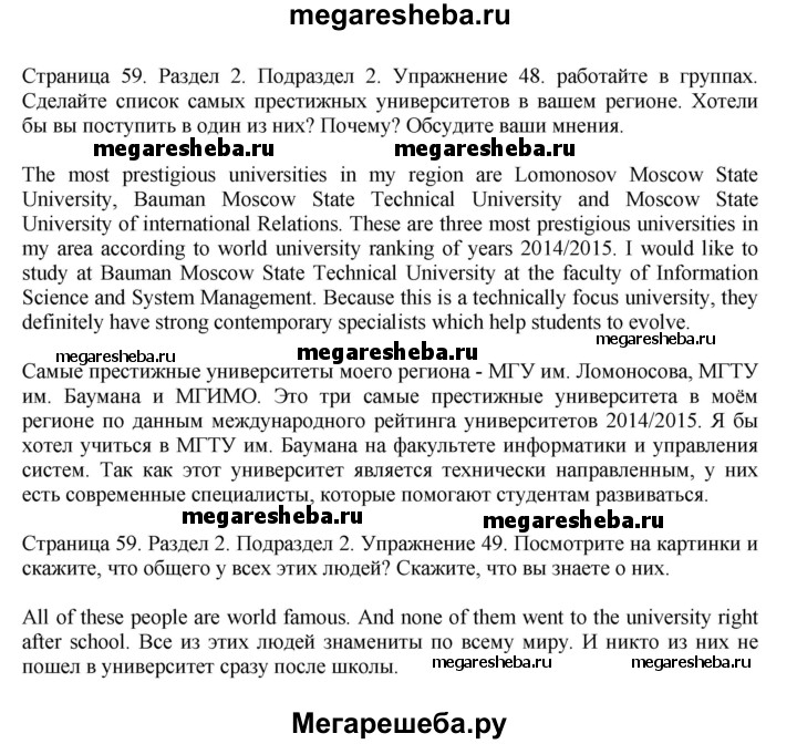 Подробный решебник (ГДЗ) по Английскому языку за 11 (одиннадцатый) класс Enjoy English - готовый ответ страница - 59. Авторы учебника: Биболетова, Бабушис, Снежко. Издательство: Титул 2015-2017.