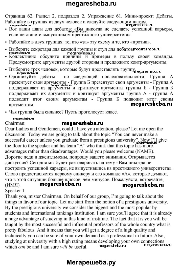 ГДЗ по английскому языку 11 класс Биболетова Enjoy English страница - 62
