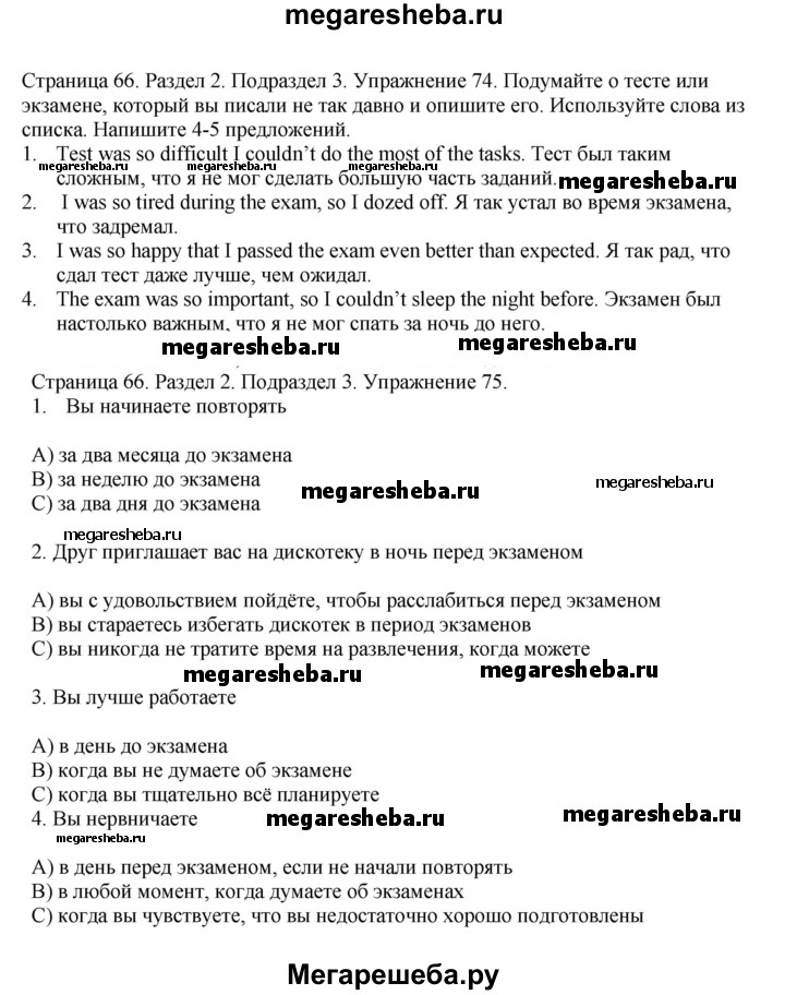 ГДЗ по английскому языку 11 класс Биболетова Enjoy English страница - 66