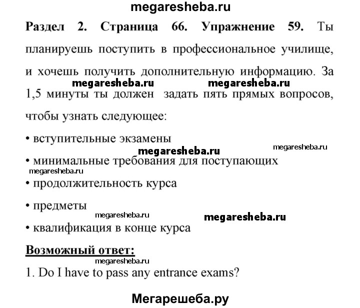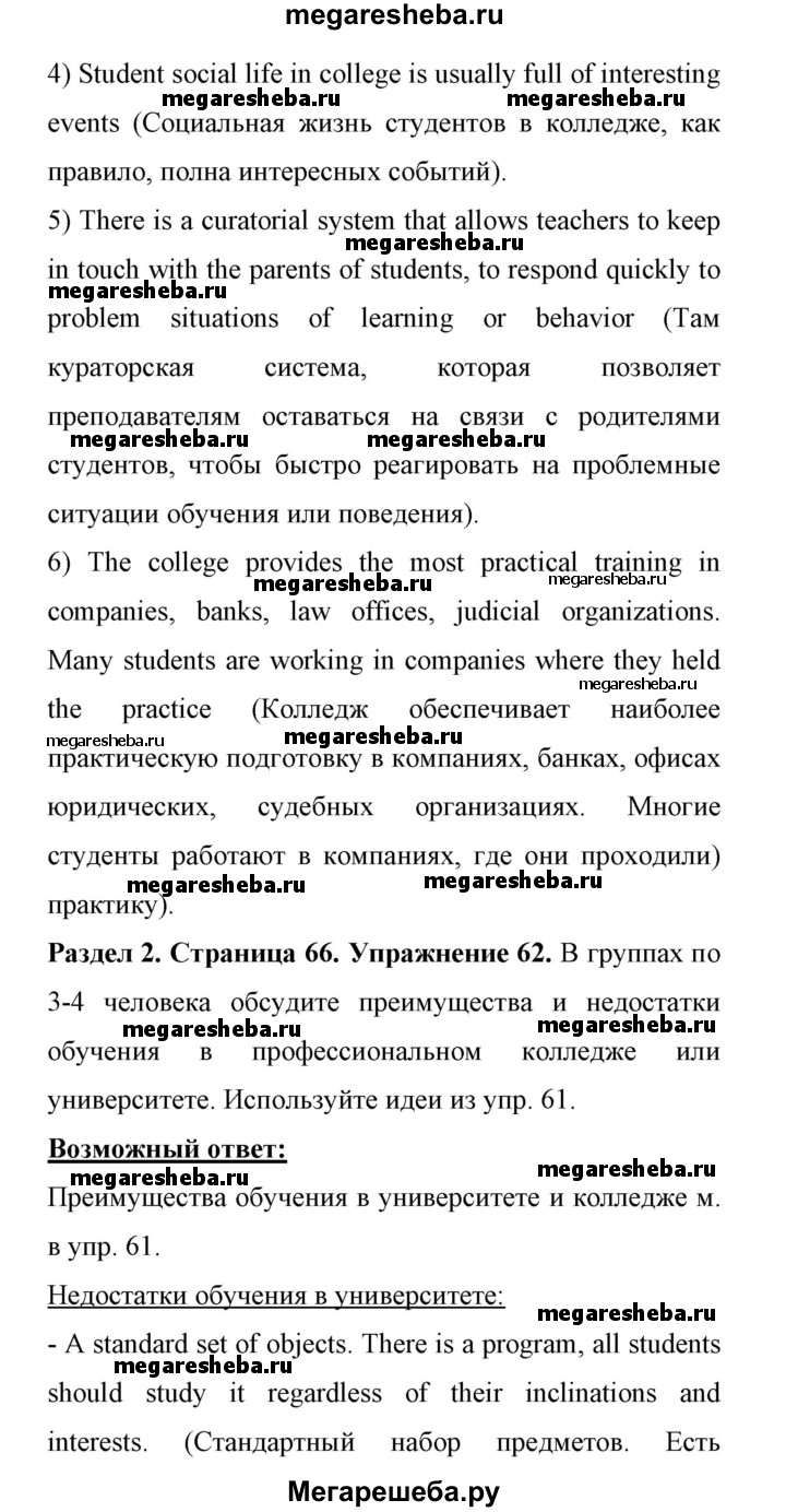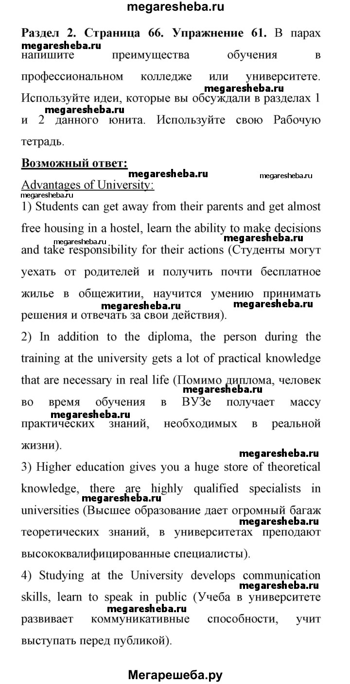 Подробный решебник (ГДЗ) по Английскому языку за 11 (одиннадцатый) класс Enjoy English - готовый ответ страница - 66. Авторы учебника: Биболетова, Бабушис, Снежко. Издательство: Титул 2015-2017.