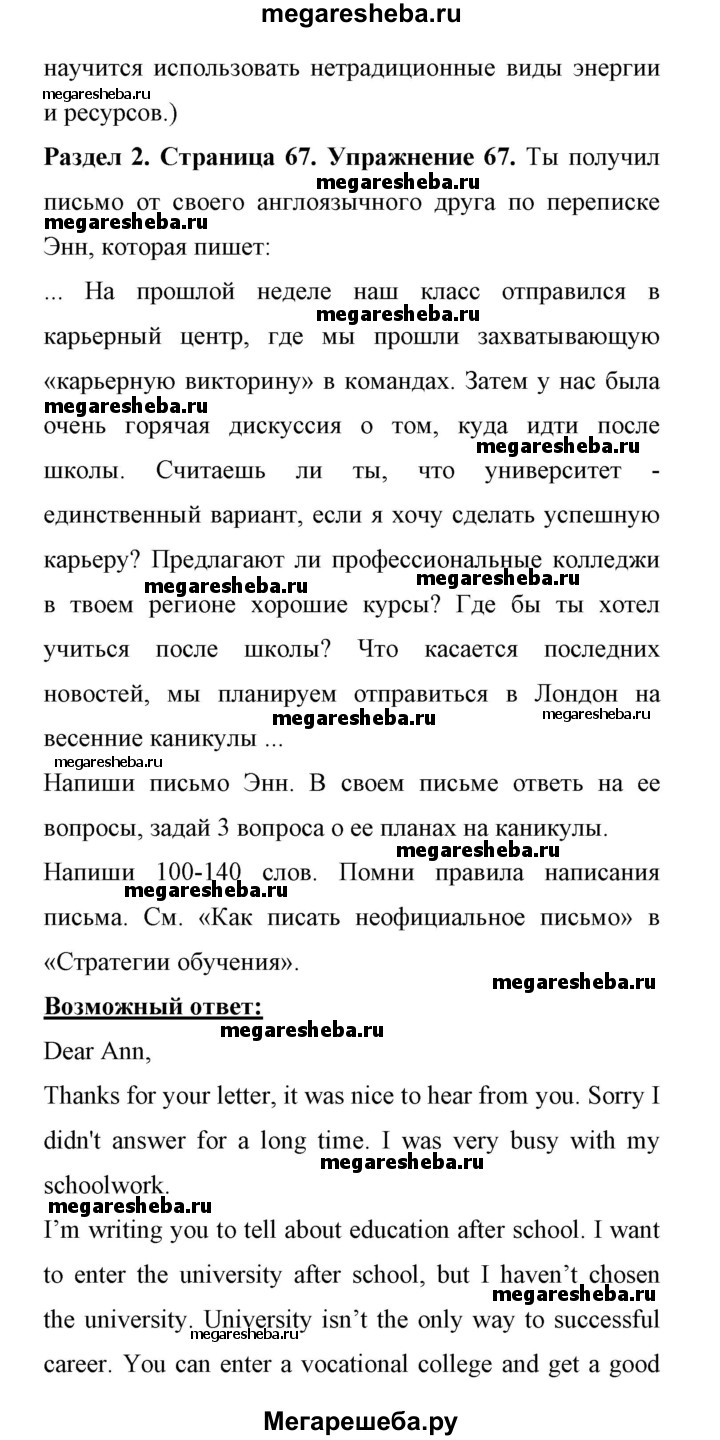 ГДЗ по английскому языку 11 класс Биболетова Enjoy English страница - 67