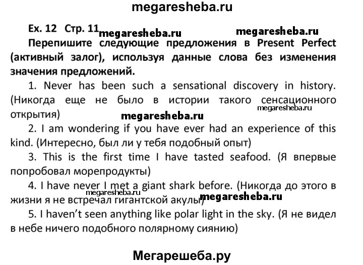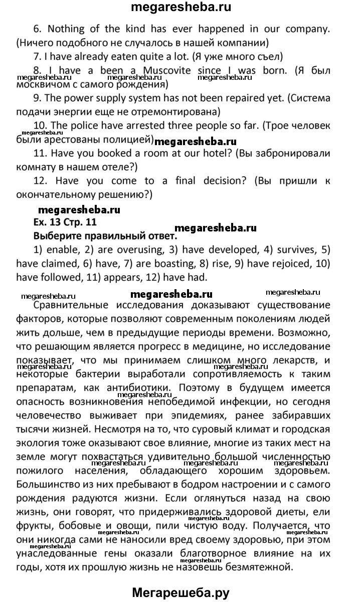 Подробный решебник (ГДЗ) по Английскому языку за 11 (одиннадцатый) класс сборник грамматических упражнений Starlight - готовый ответ страница - 11. Авторы учебника: Мильруд, Углубленный уровень. Издательство: Просвещение 2017.