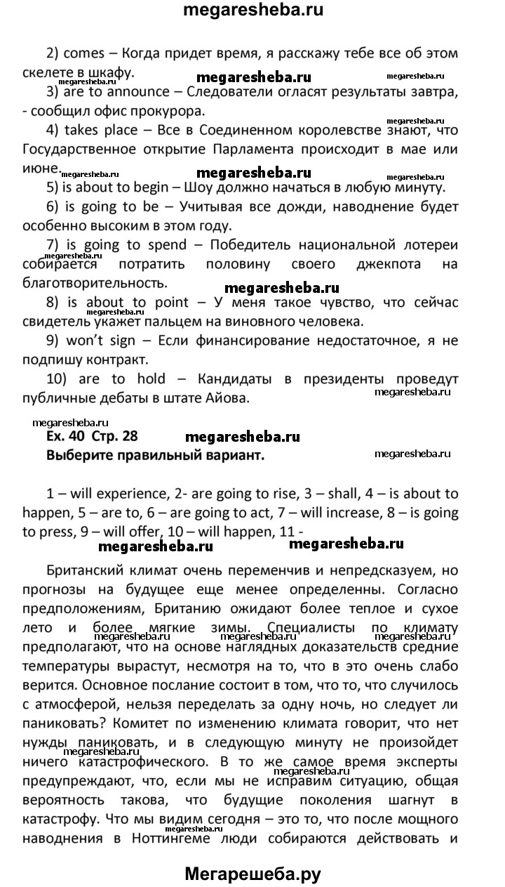Подробный решебник (ГДЗ) по Английскому языку за 11 (одиннадцатый) класс сборник грамматических упражнений Starlight - готовый ответ страница - 28. Авторы учебника: Мильруд, Углубленный уровень. Издательство: Просвещение 2017.