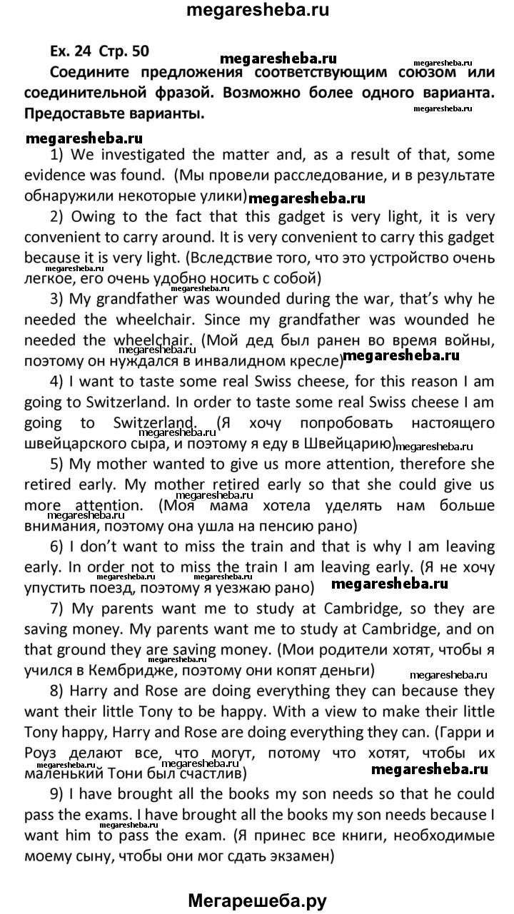 Подробный решебник (ГДЗ) по Английскому языку за 11 (одиннадцатый) класс сборник грамматических упражнений Starlight - готовый ответ страница - 50. Авторы учебника: Мильруд, Углубленный уровень. Издательство: Просвещение 2017.