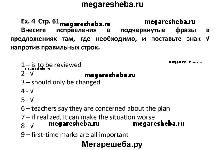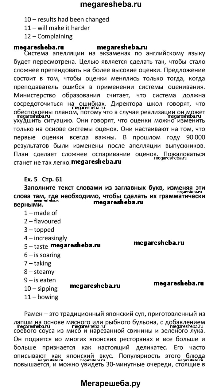 Подробный решебник (ГДЗ) по Английскому языку за 11 (одиннадцатый) класс сборник грамматических упражнений Starlight - готовый ответ страница - 61. Авторы учебника: Мильруд, Углубленный уровень. Издательство: Просвещение 2017.