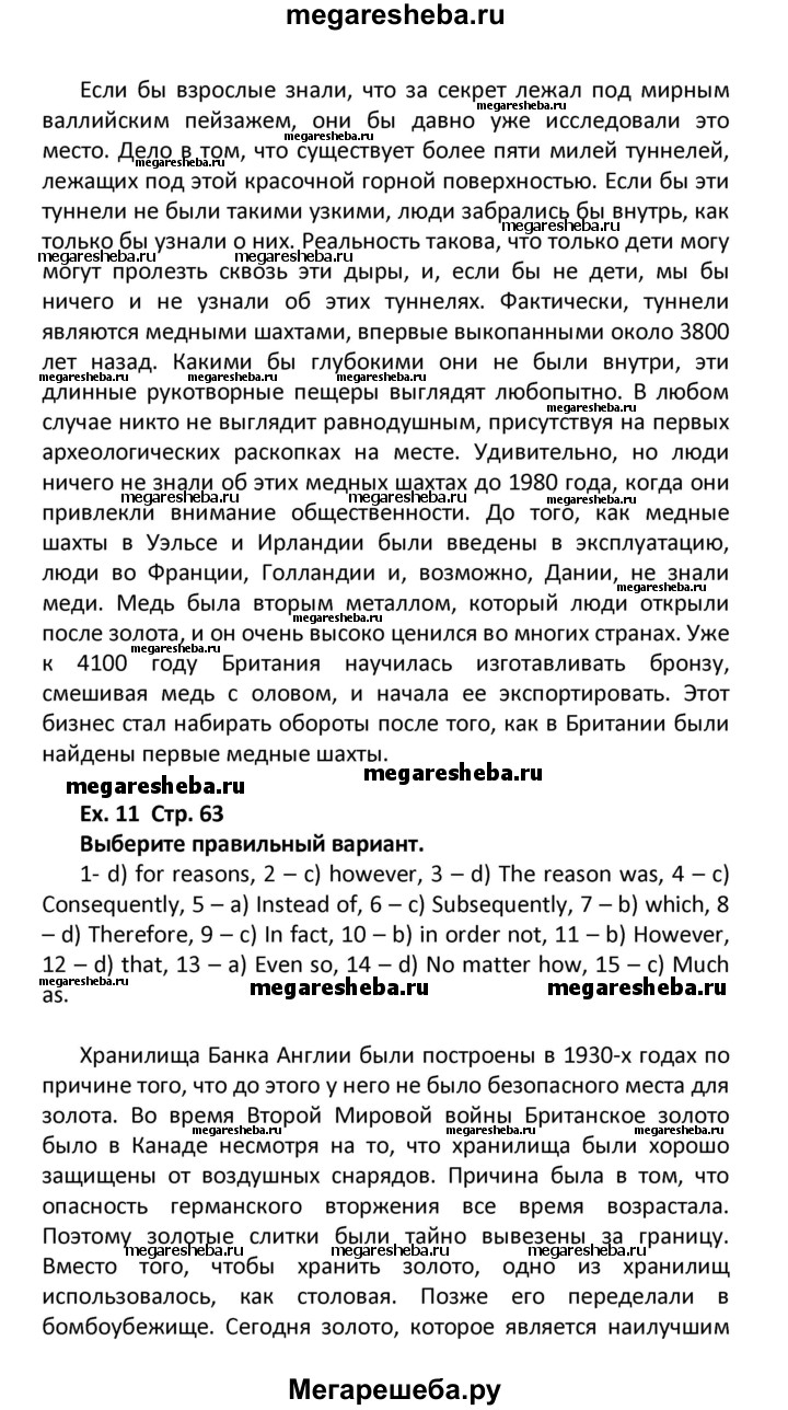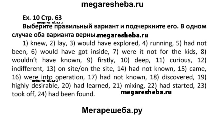 Подробный решебник (ГДЗ) по Английскому языку за 11 (одиннадцатый) класс сборник грамматических упражнений Starlight - готовый ответ страница - 63. Авторы учебника: Мильруд, Углубленный уровень. Издательство: Просвещение 2017.