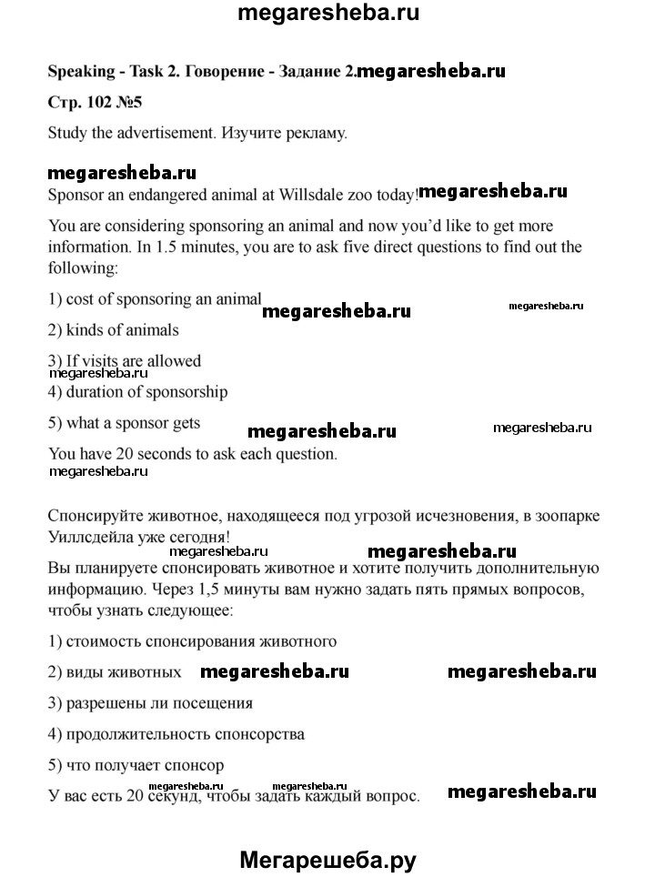 Подробный решебник (ГДЗ) по Английскому языку за 11 (одиннадцатый) класс Starlight - готовый ответ страница - 102. Авторы учебника: Баранова, Дули, Копылова, Мильруд, Эванс, Углубленный уровень. Издательство: Просвещение 2015-2024.