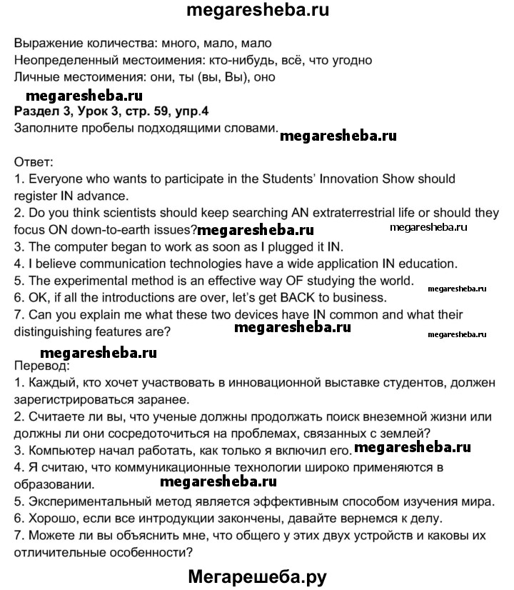 Подробный решебник (ГДЗ) по Английскому языку за 11 (одиннадцатый) класс рабочая тетрадь - готовый ответ страница - 59. Авторы учебника: Биболетова, Бабушис, Снежко. Издательство: Титул 2013-2017.