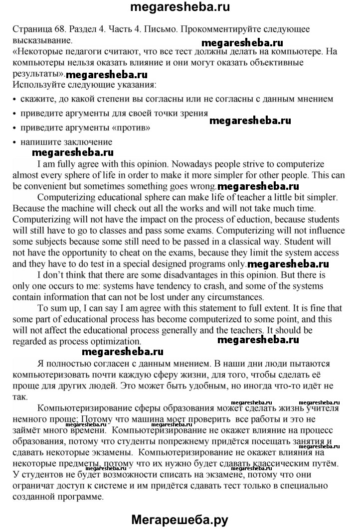 Подробный решебник (ГДЗ) по Английскому языку за 11 (одиннадцатый) класс рабочая тетрадь - готовый ответ страница - 68. Авторы учебника: Биболетова, Бабушис, Снежко. Издательство: Титул 2013-2017.