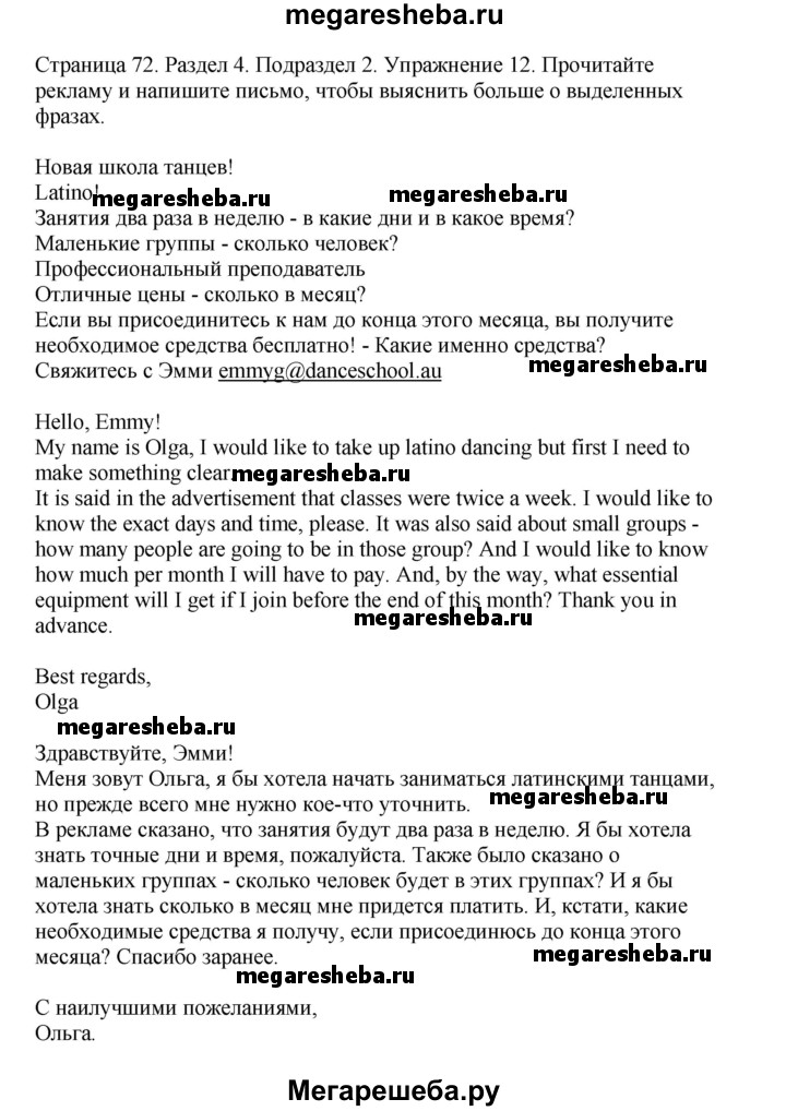 ГДЗ по английскому языку 11 класс Биболетова рабочая тетрадь страница - 72