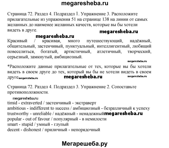 Подробный решебник (ГДЗ) по Английскому языку за 11 (одиннадцатый) класс рабочая тетрадь - готовый ответ страница - 72. Авторы учебника: Биболетова, Бабушис, Снежко. Издательство: Титул 2013-2017.