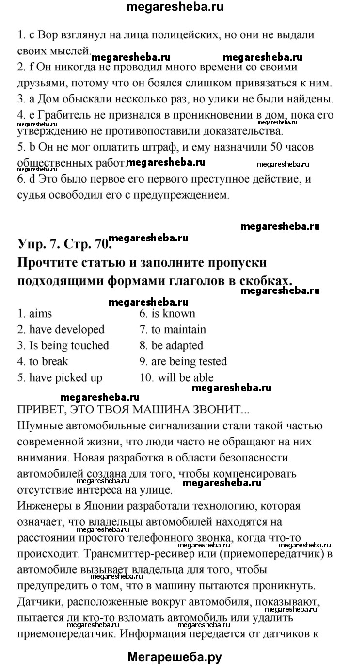 Подробный решебник (ГДЗ) по Английскому языку за 11 (одиннадцатый) класс рабочая тетрадь New Millennium - готовый ответ страница - 70. Авторы учебника: Гроза, Дворецкая. Издательство: Титул 2015.