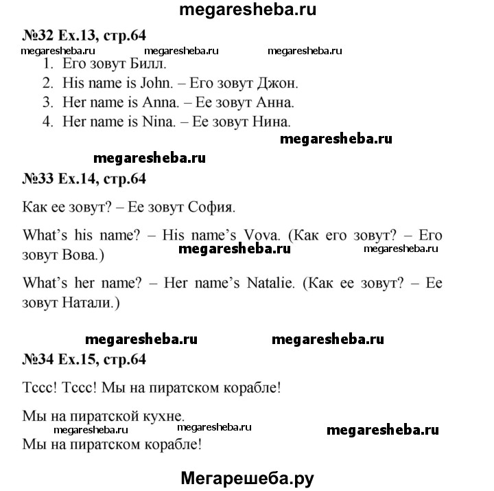 Подробный решебник (ГДЗ) по Английскому языку за 2 (второй) класс - готовый ответ страница - 64. Авторы учебника: Комарова, Ларионова, Перретт. Издательство: Русское слово 2013.
