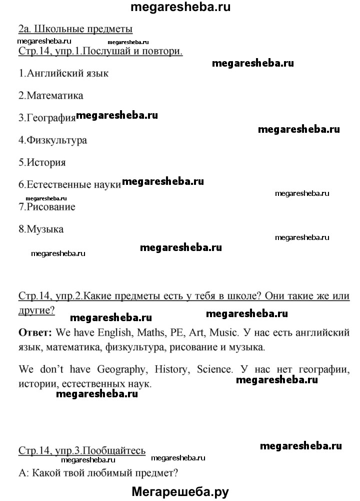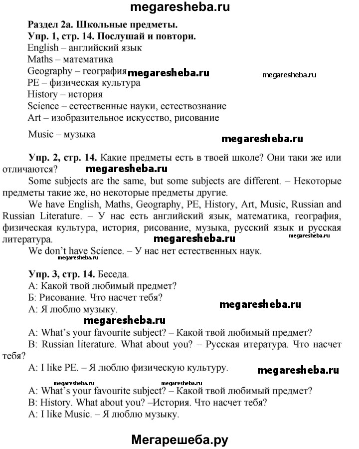 ГДЗ по английскому языку 3 класс Быкова Spotlight часть 1. страница - 14