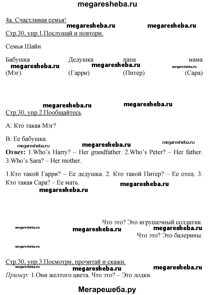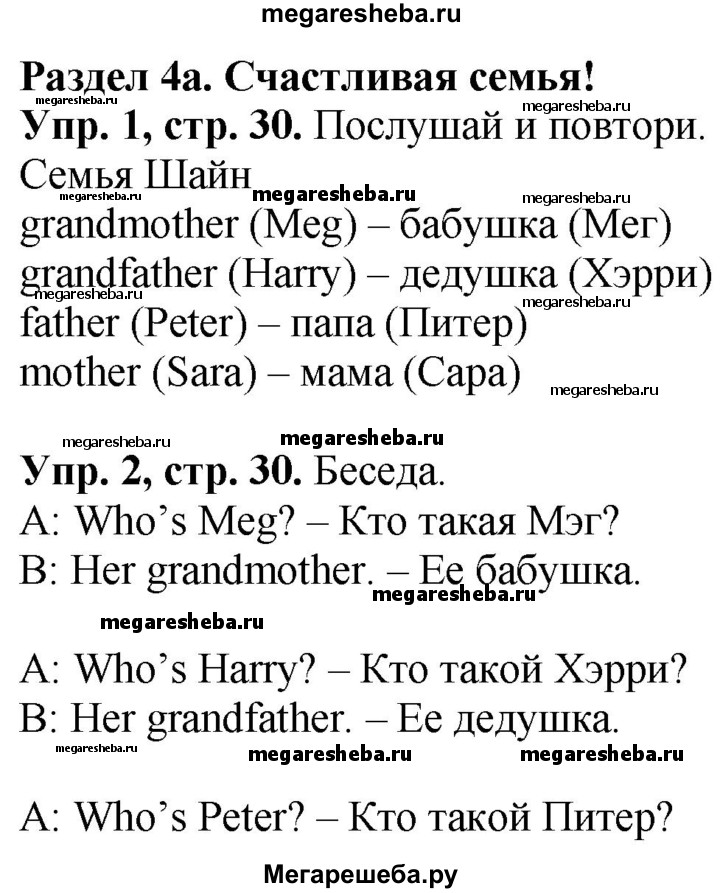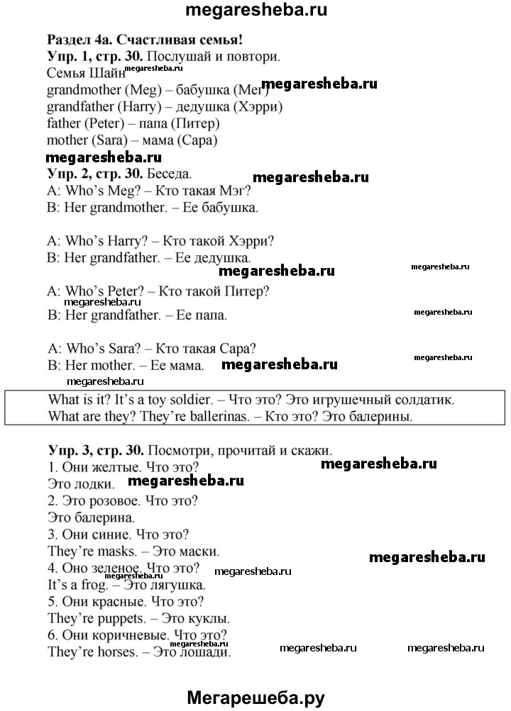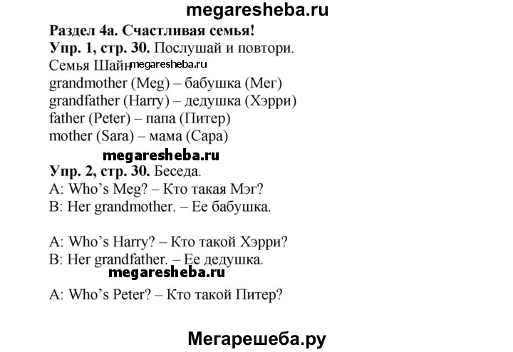 ГДЗ по английскому языку 3 класс Быкова Spotlight часть 1. страница - 30