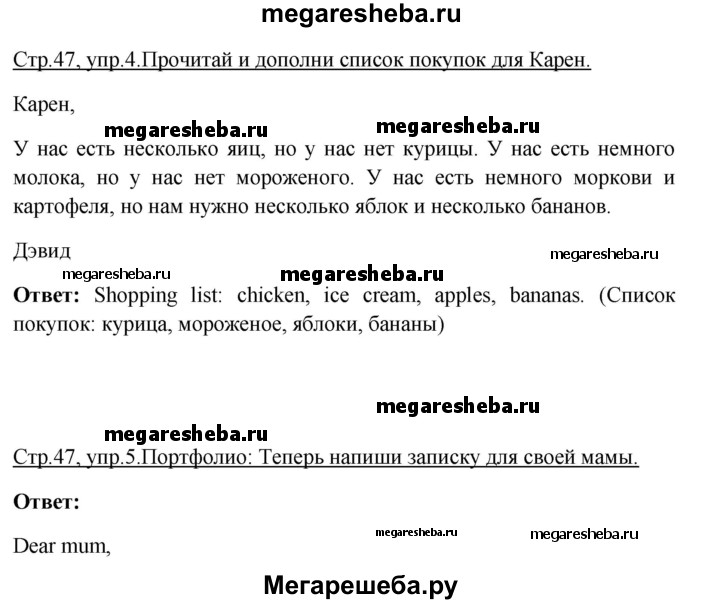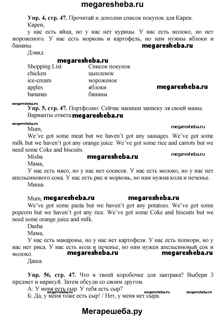 ГДЗ по английскому языку 3 класс Быкова Spotlight часть 1. страница - 47