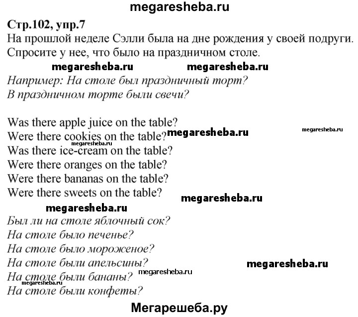 Подробный решебник (ГДЗ) по Английскому языку за 3 (третий) класс - готовый ответ часть 1. страница - 102. Авторы учебника: Верещагина, Притыкина, Углубленный уровень. Издательство: Просвещение 2013-2023.