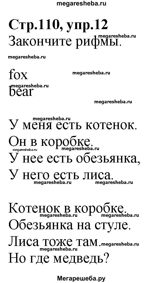 Подробный решебник (ГДЗ) по Английскому языку за 3 (третий) класс - готовый ответ часть 1. страница - 110. Авторы учебника: Верещагина, Притыкина, Углубленный уровень. Издательство: Просвещение 2013-2023.
