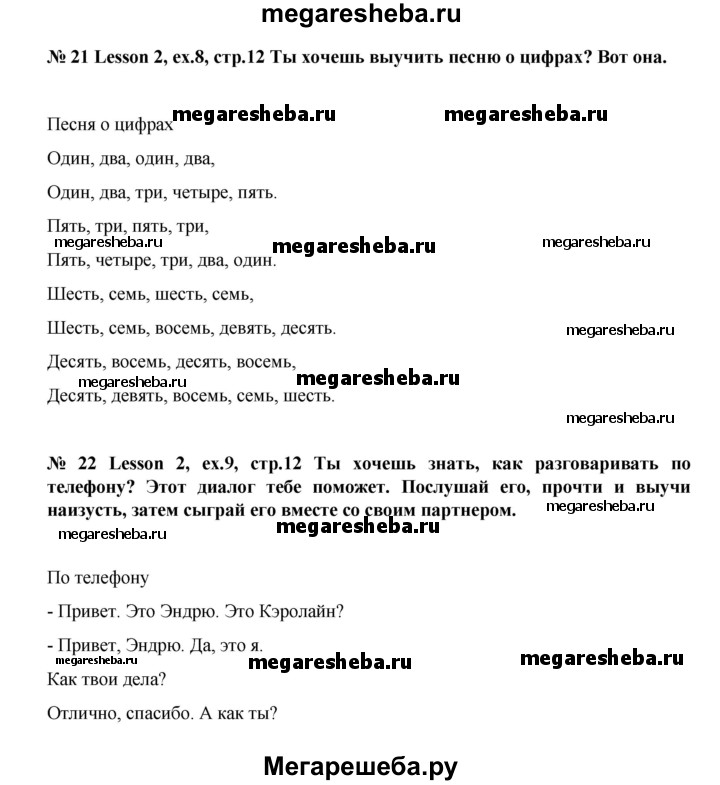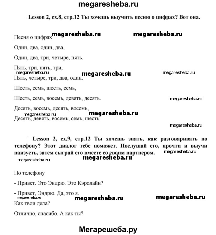 Подробный решебник (ГДЗ) по Английскому языку за 3 (третий) класс - готовый ответ часть 1. страница - 12. Авторы учебника: Верещагина, Притыкина, Углубленный уровень. Издательство: Просвещение 2013-2023.