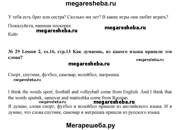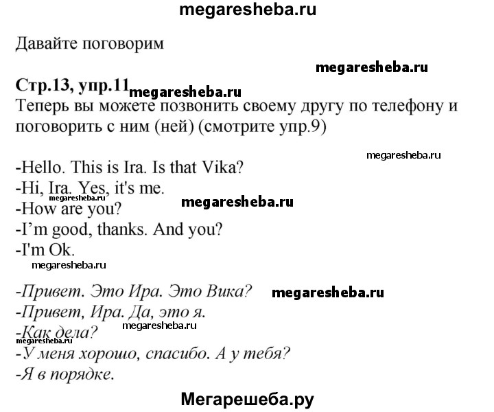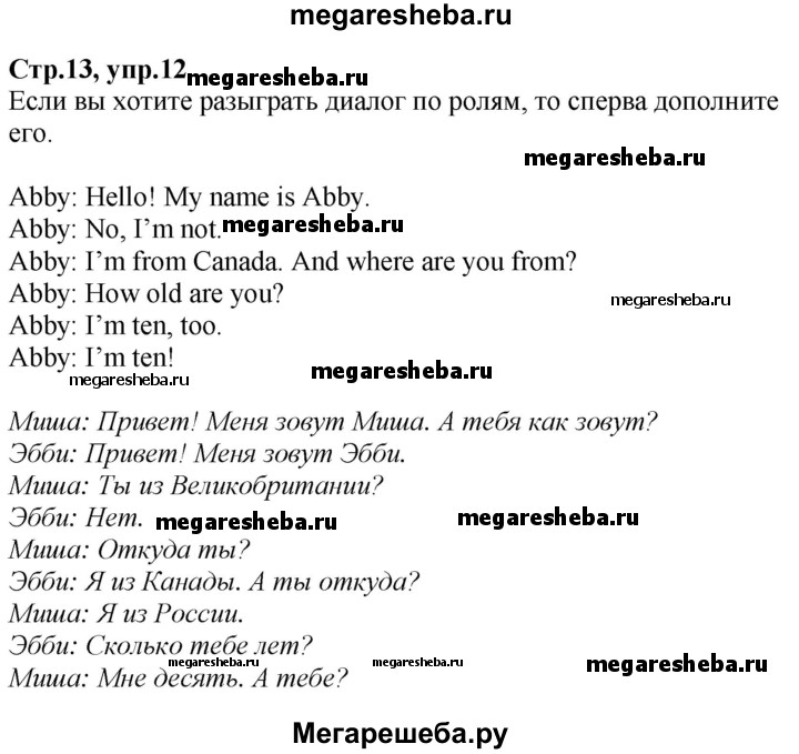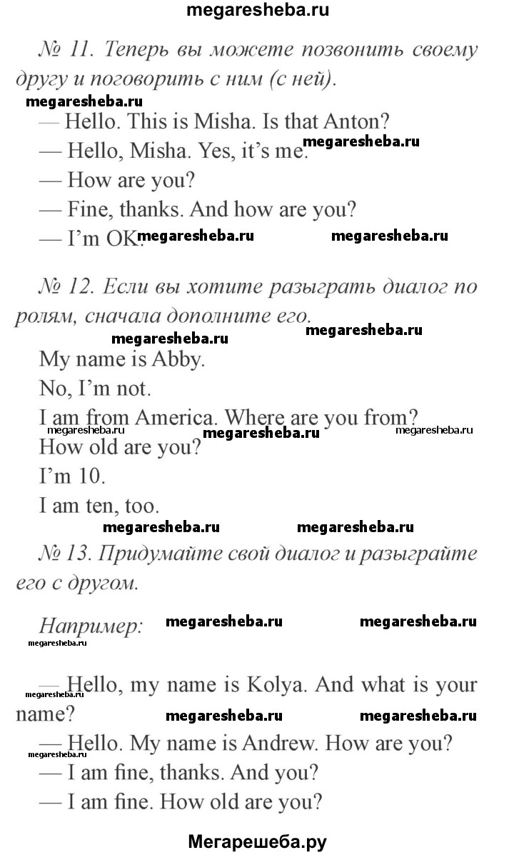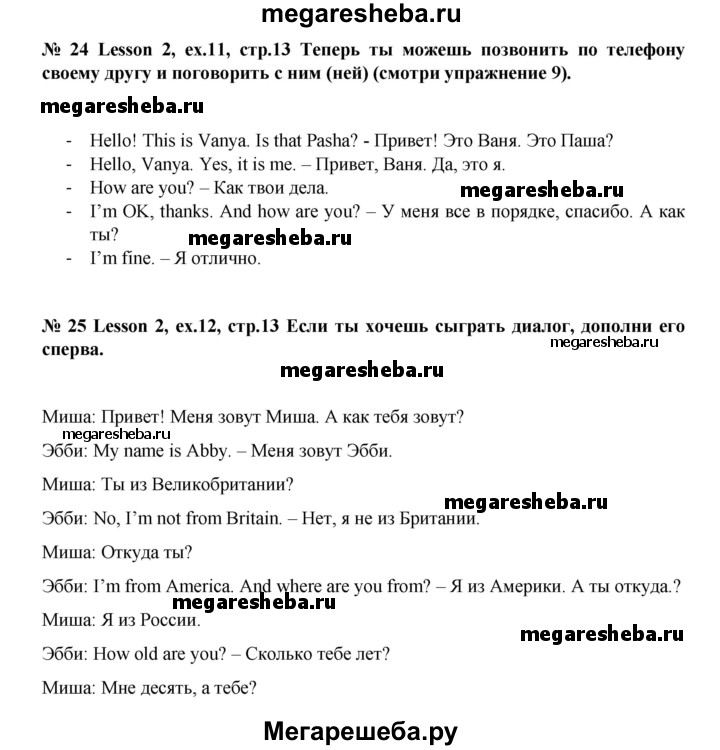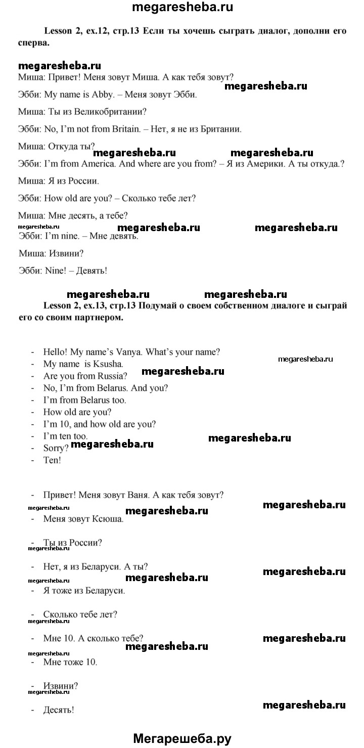 Подробный решебник (ГДЗ) по Английскому языку за 3 (третий) класс - готовый ответ часть 1. страница - 13. Авторы учебника: Верещагина, Притыкина, Углубленный уровень. Издательство: Просвещение 2013-2023.