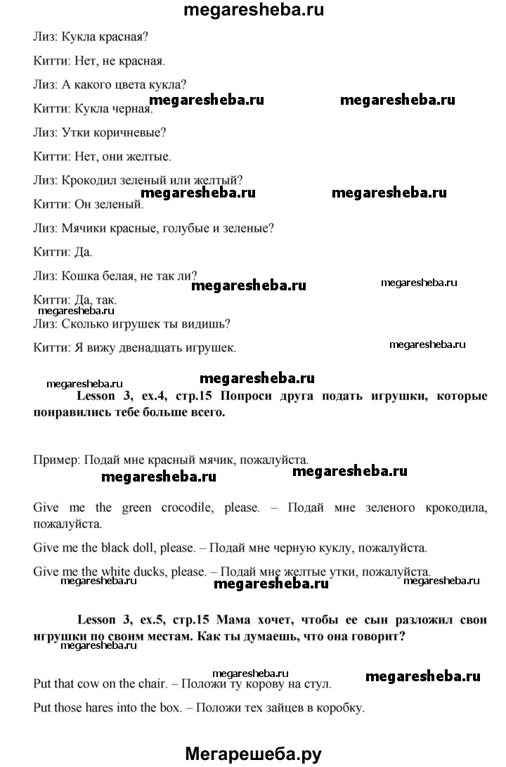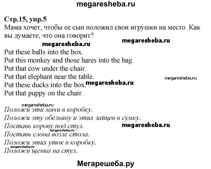 Подробный решебник (ГДЗ) по Английскому языку за 3 (третий) класс - готовый ответ часть 1. страница - 15. Авторы учебника: Верещагина, Притыкина, Углубленный уровень. Издательство: Просвещение 2013-2023.